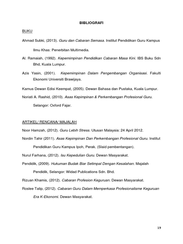 Related : Bibliografi Kamus Dewan Edisi Keempat / Bibliografi bermaksud menyenaraikan semua sumber rujukan dan bacaan sama ada yang telah diterbitkan seperti buku, jurnal dan majalah ataupun yang belum terbit seperti kertas kerja, tesis dan disertasi..